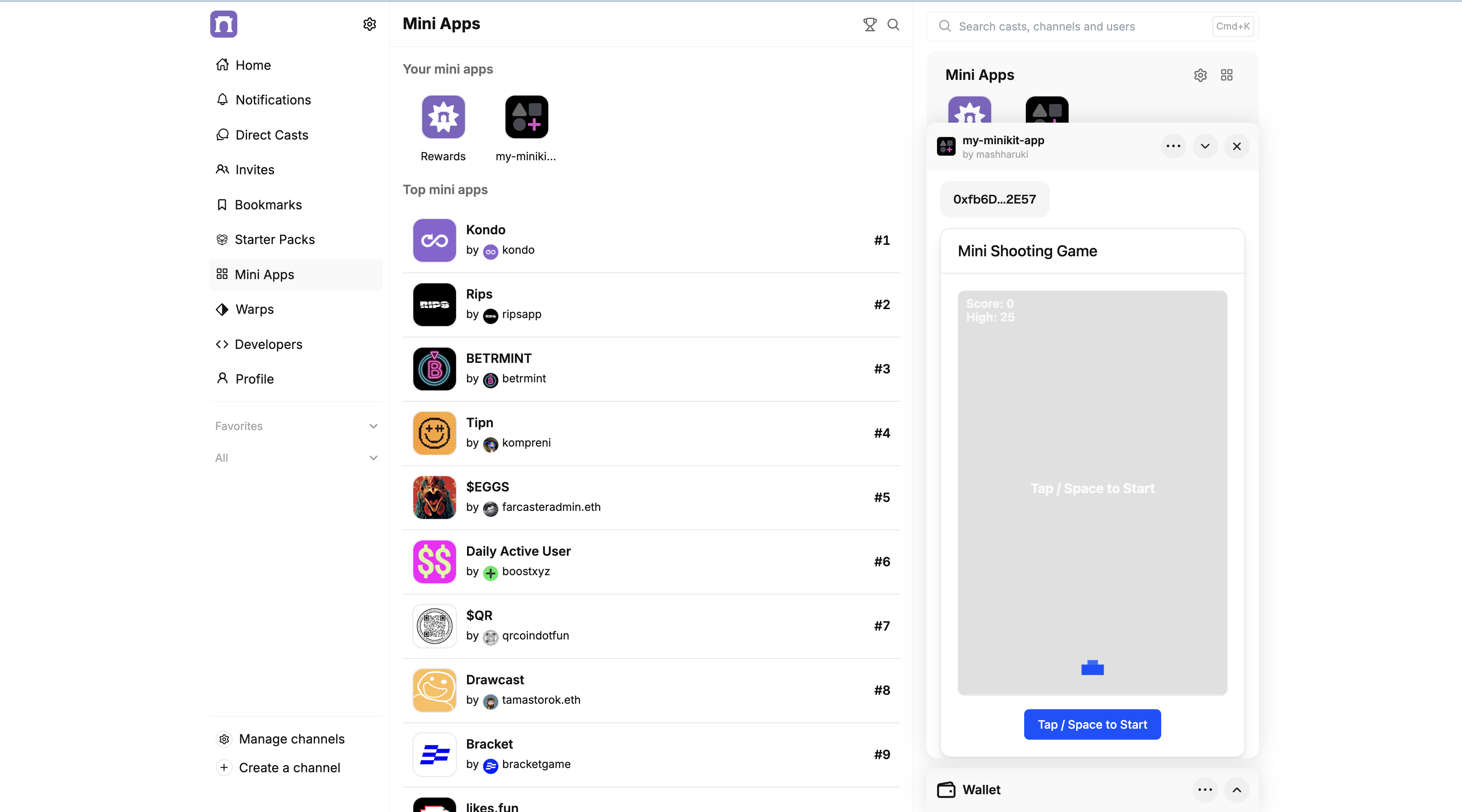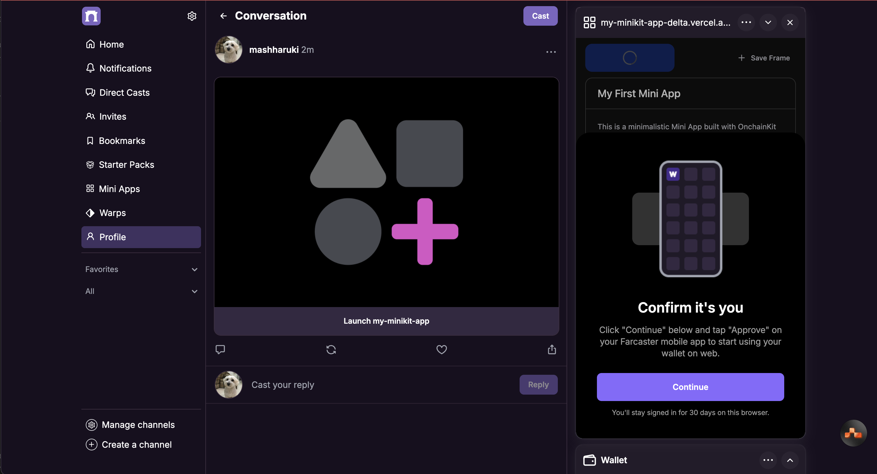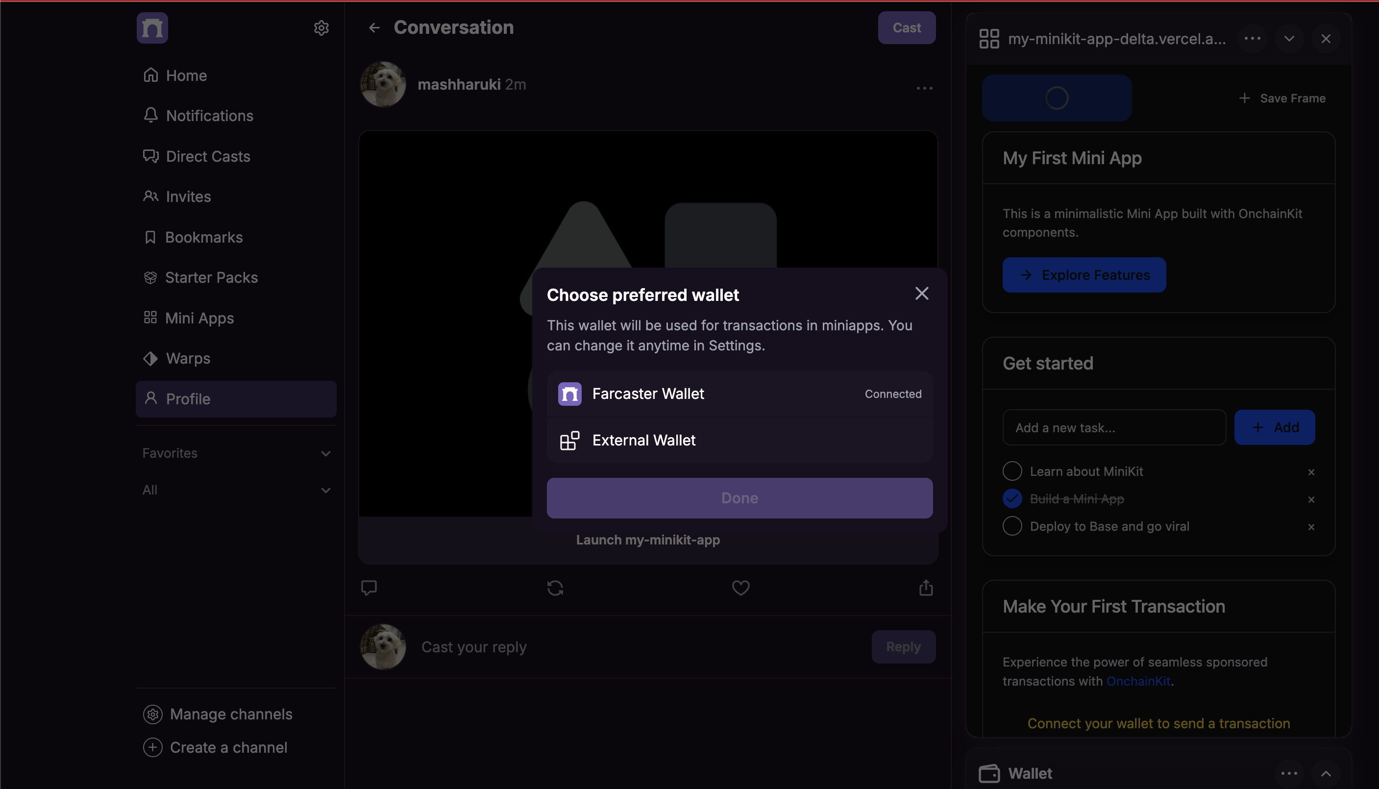 ついに最終レッスンです。これまでに作成し、デプロイしたMini AppをFarcaster上で実際に起動し、動作を確認します。