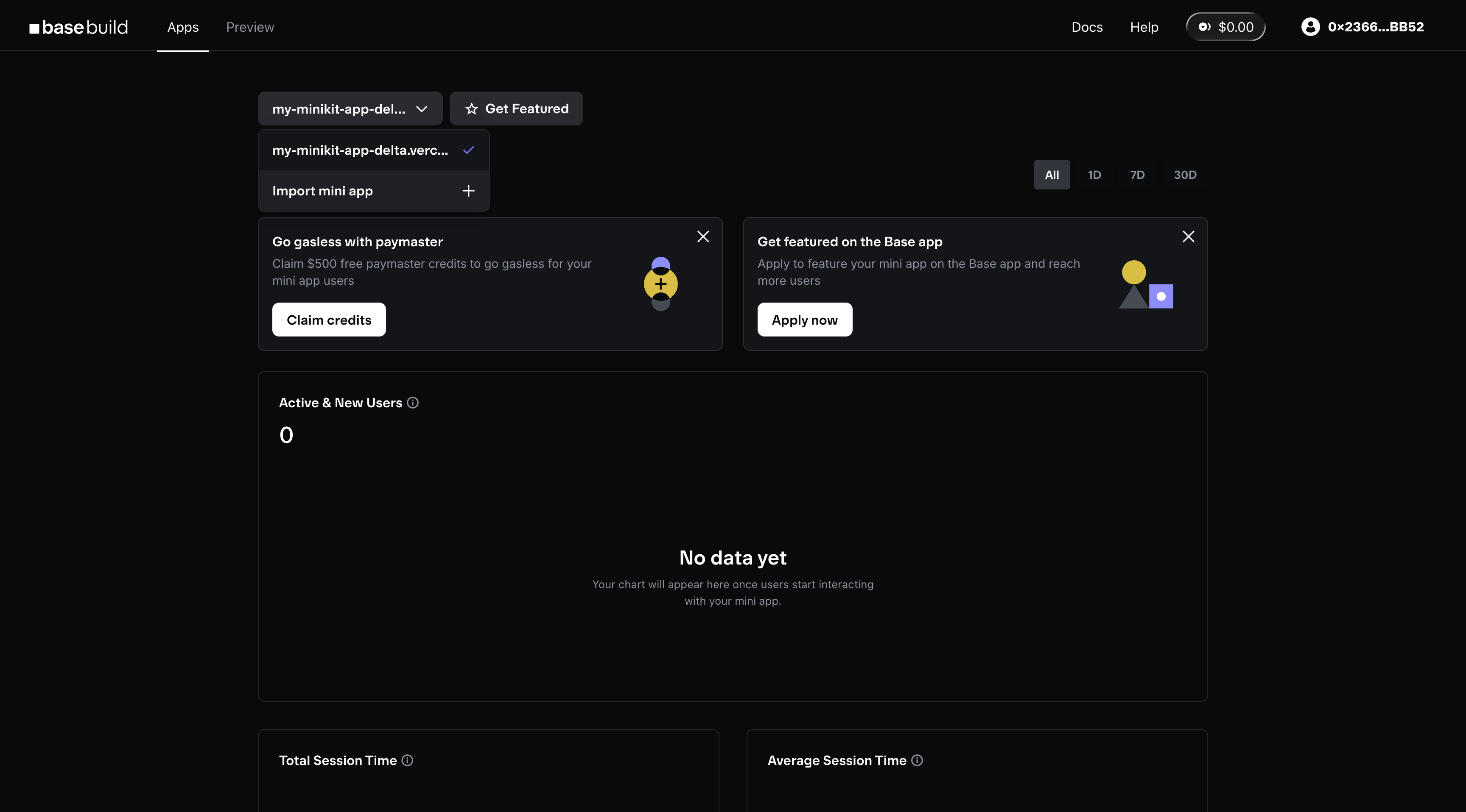 SignInが完了したら以下のような画面に遷移するはずなのでImport your mini app