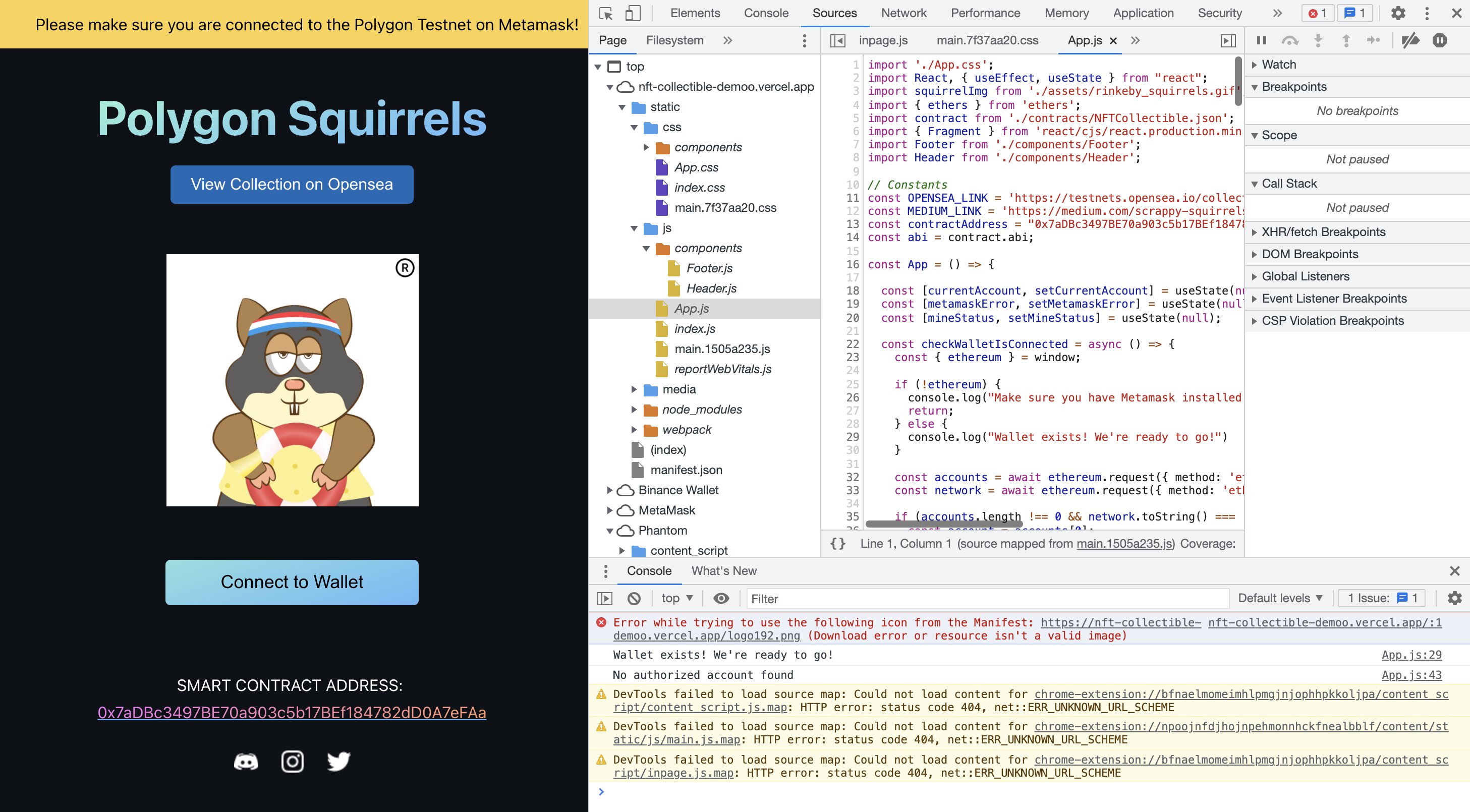 あなたのWebサイトでは、ユーザーはPolygon Testnetに接続すれば、NFTをMintできます。