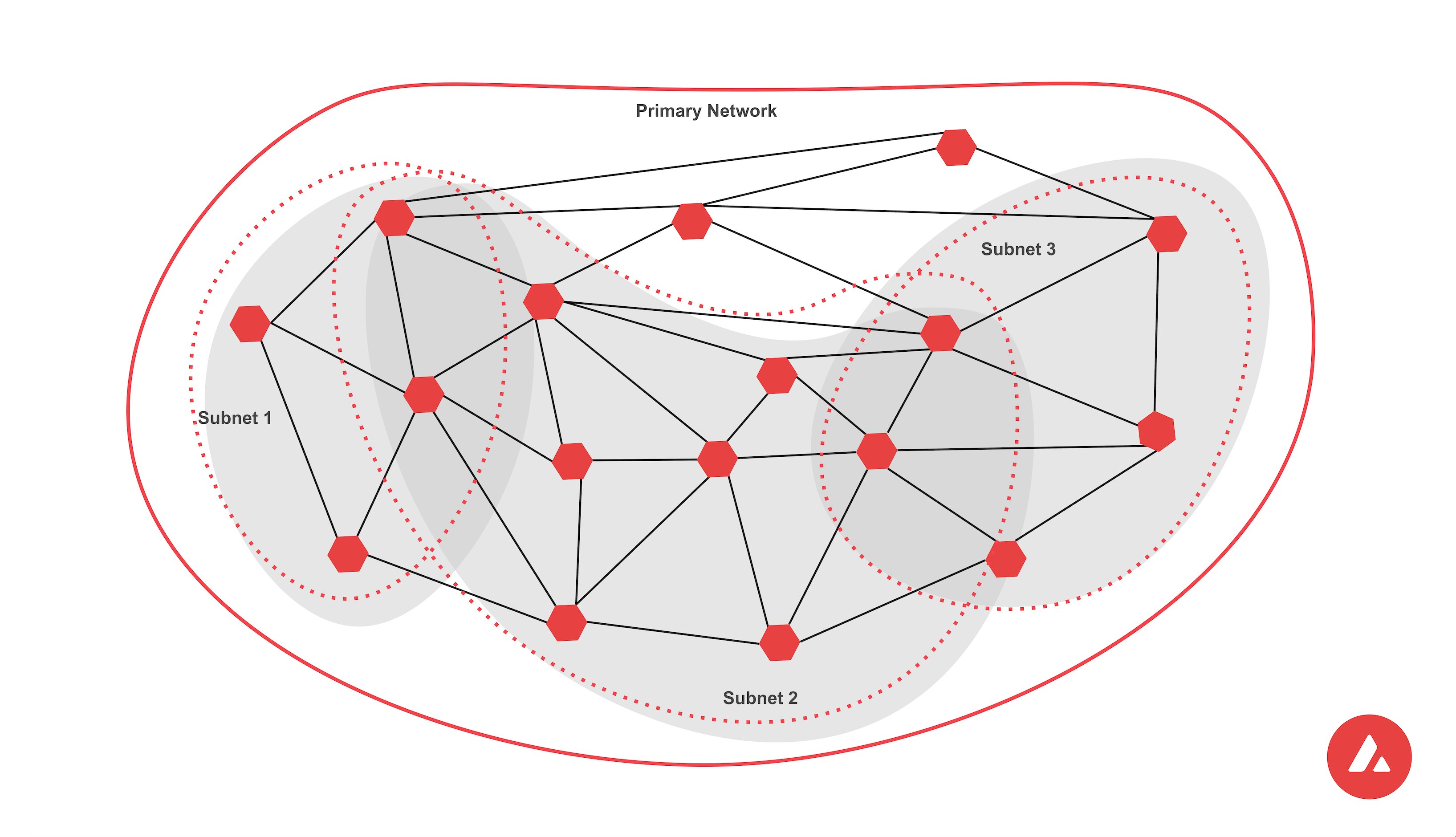 Avalancheには3つのビルトインブロックチェーン(P-Chain、C-Chain、X-Chain)があり、プライマリネットネットワークと呼ばれます。 このビルトインブロックチェーンに加え、Subnetによるブロックチェーンをいくつも増やしていくことができます。