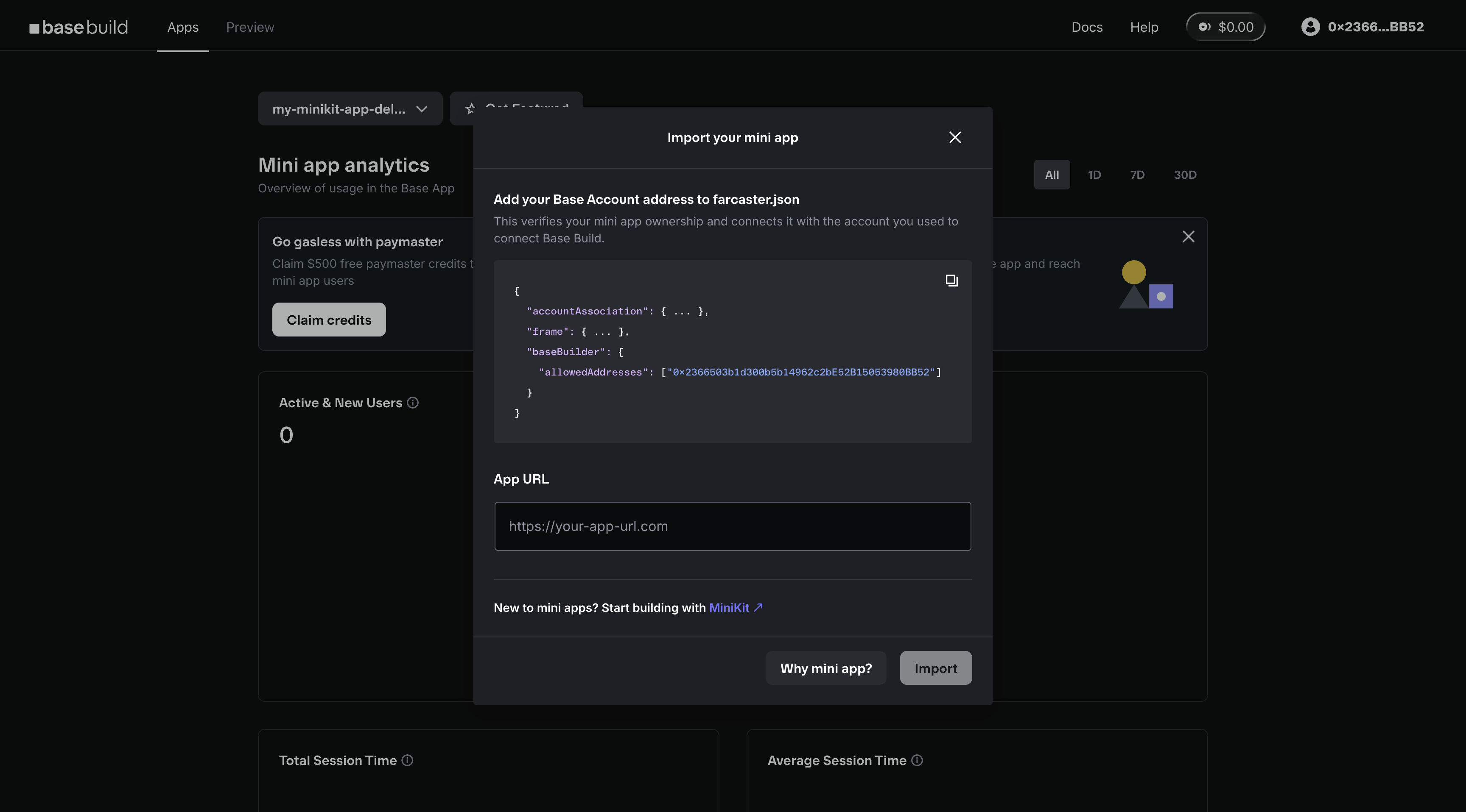SignInが完了したら以下のような画面に遷移するはずなのでImport your mini app