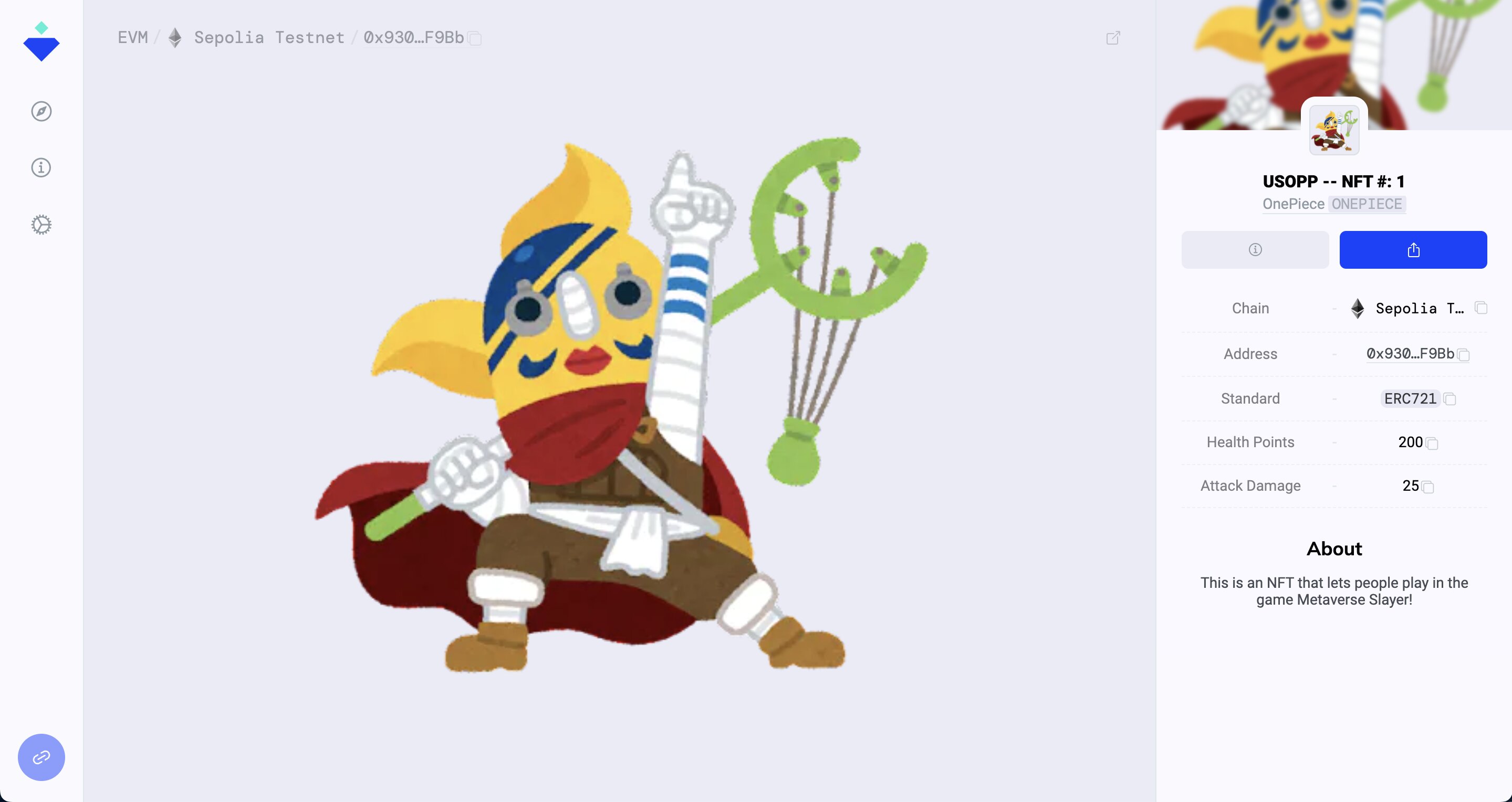 では、「ウソップ」のNFTを1体作り、「ウソップ」に「クロコダイル」を2回攻撃させました。